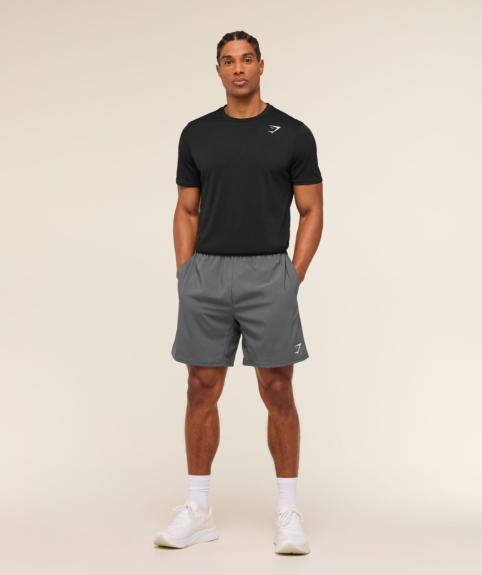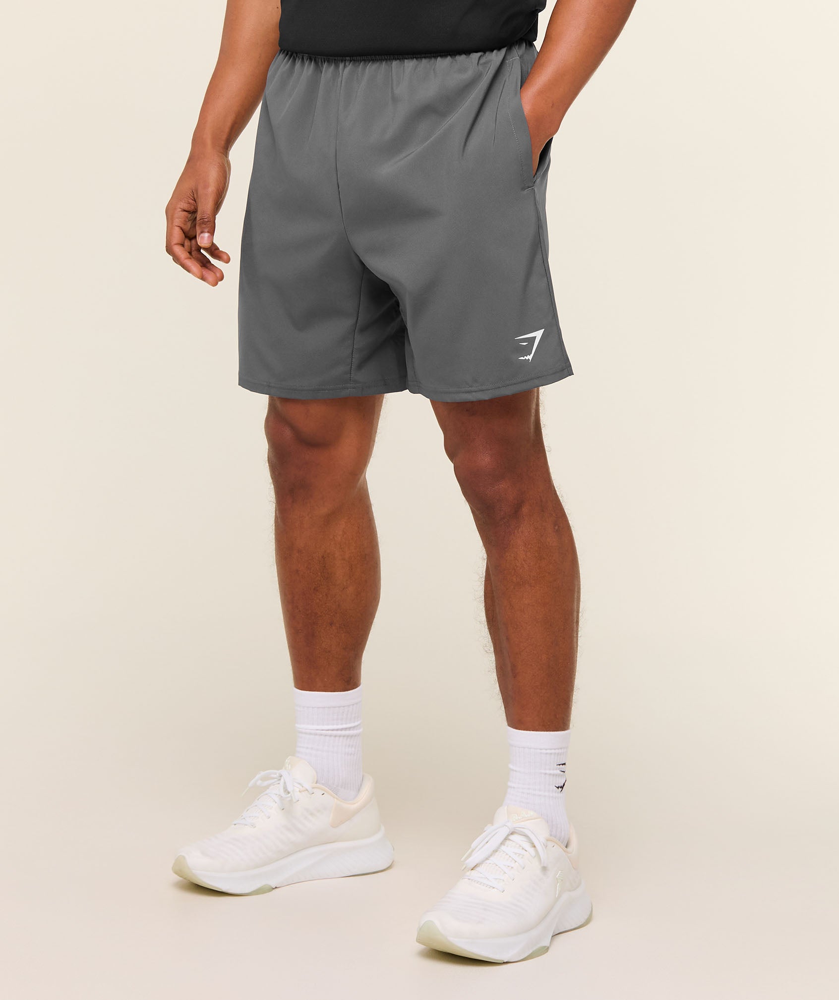 – Slim fit- Woven short- 7” in-seam- Lightweight material- Sweat-wicking- Elasticated drawcord waistband- Open side pockets- Heat-sealed logo to thigh- 100% Polyester- Model is 6’2″ and wears size M– SKU: A2A1L-GBP4