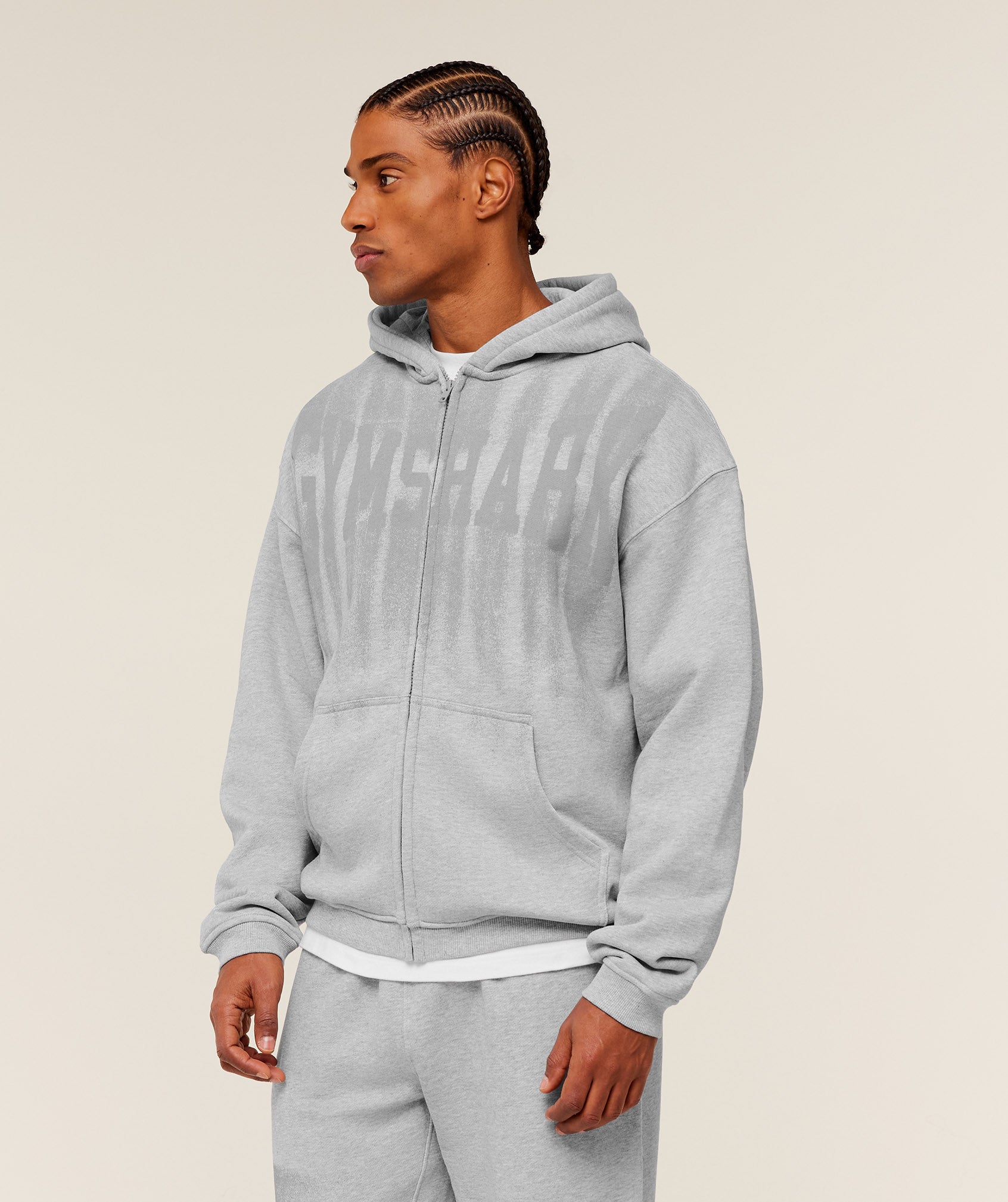 - Grungy fade graphic on the front