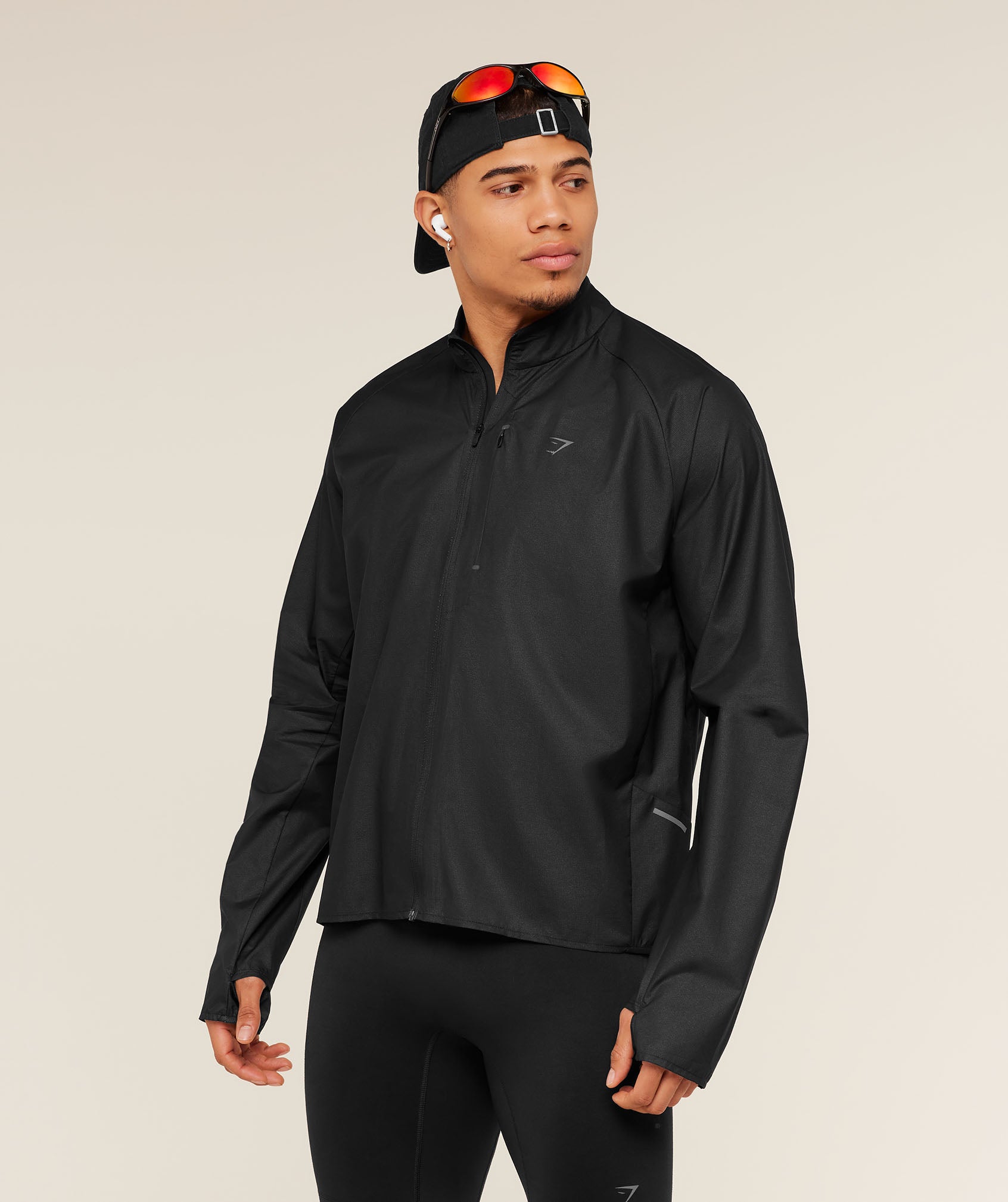 Designed for running. This windbreaker is slim fit and made from lightweight, water resistant and windproof fabric.