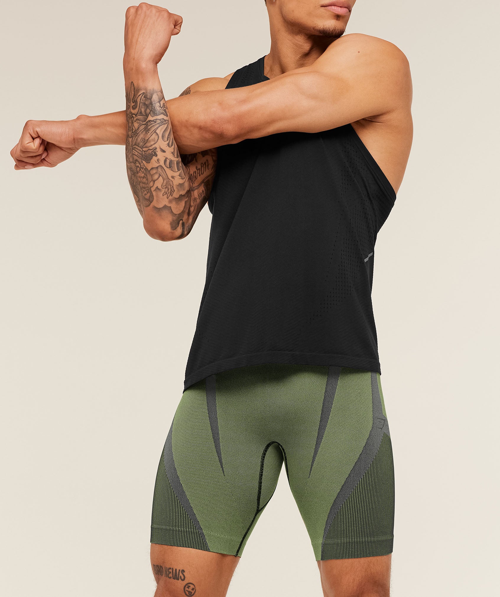 • Seamless ribbed panels for more freedom of movement